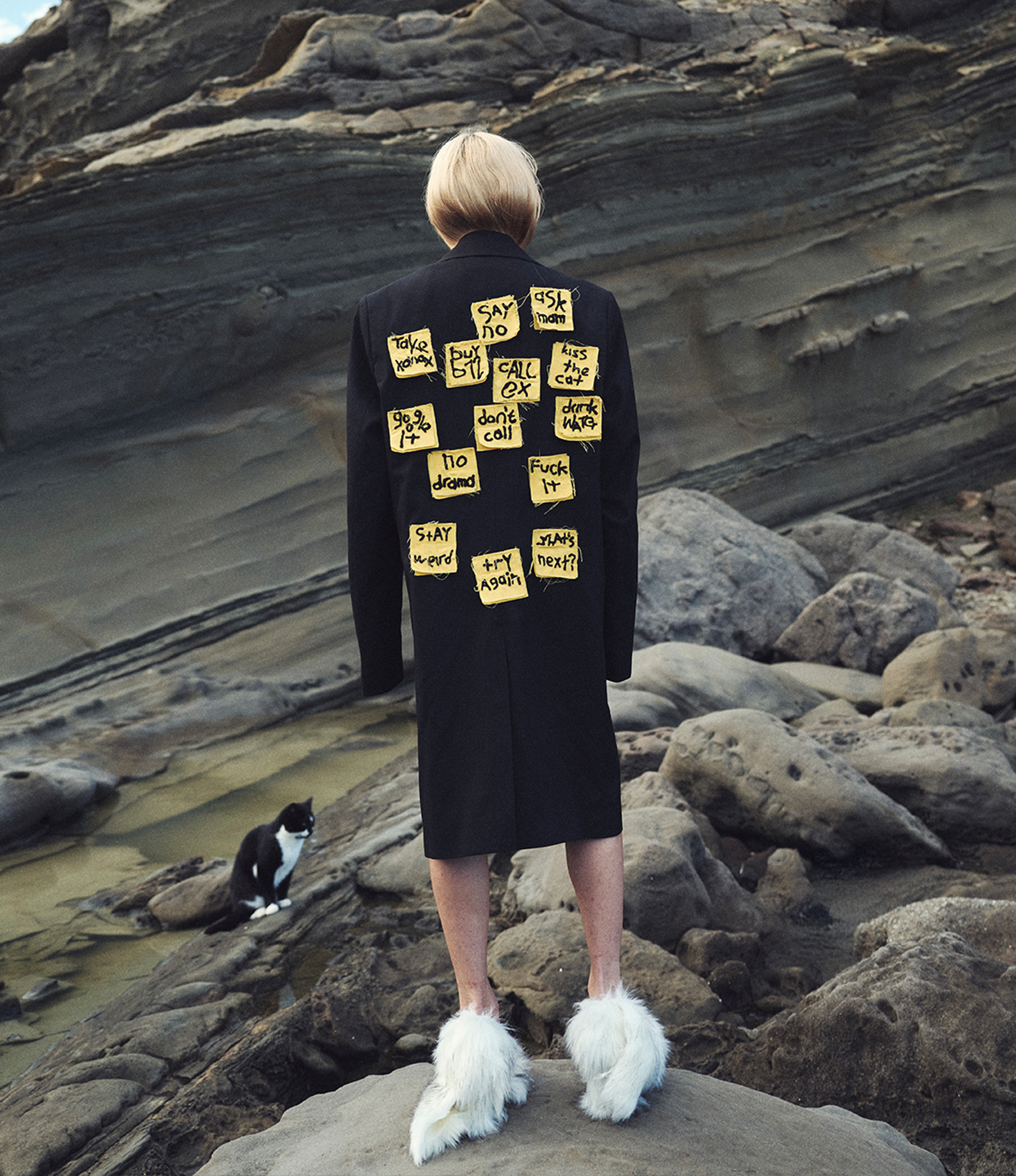 Hi, I am Unfinished Thoughts. My body is covered in fleeting ideas—moments you almost forgot, reminders you never wrote down, sparks that could have changed everything. Each note on me is a whisper: “Don’t lose this. Don’t lose yourself.” I am the garment of half-formed plans, unanswered questions, and brave beginnings. Wear me when you’re ready to catch your thoughts before they fly away. I don’t want perfection from you. I want motion, curiosity, and the courage to begin again and again. I hold your chaos gently—because inside it lives your next masterpiece.